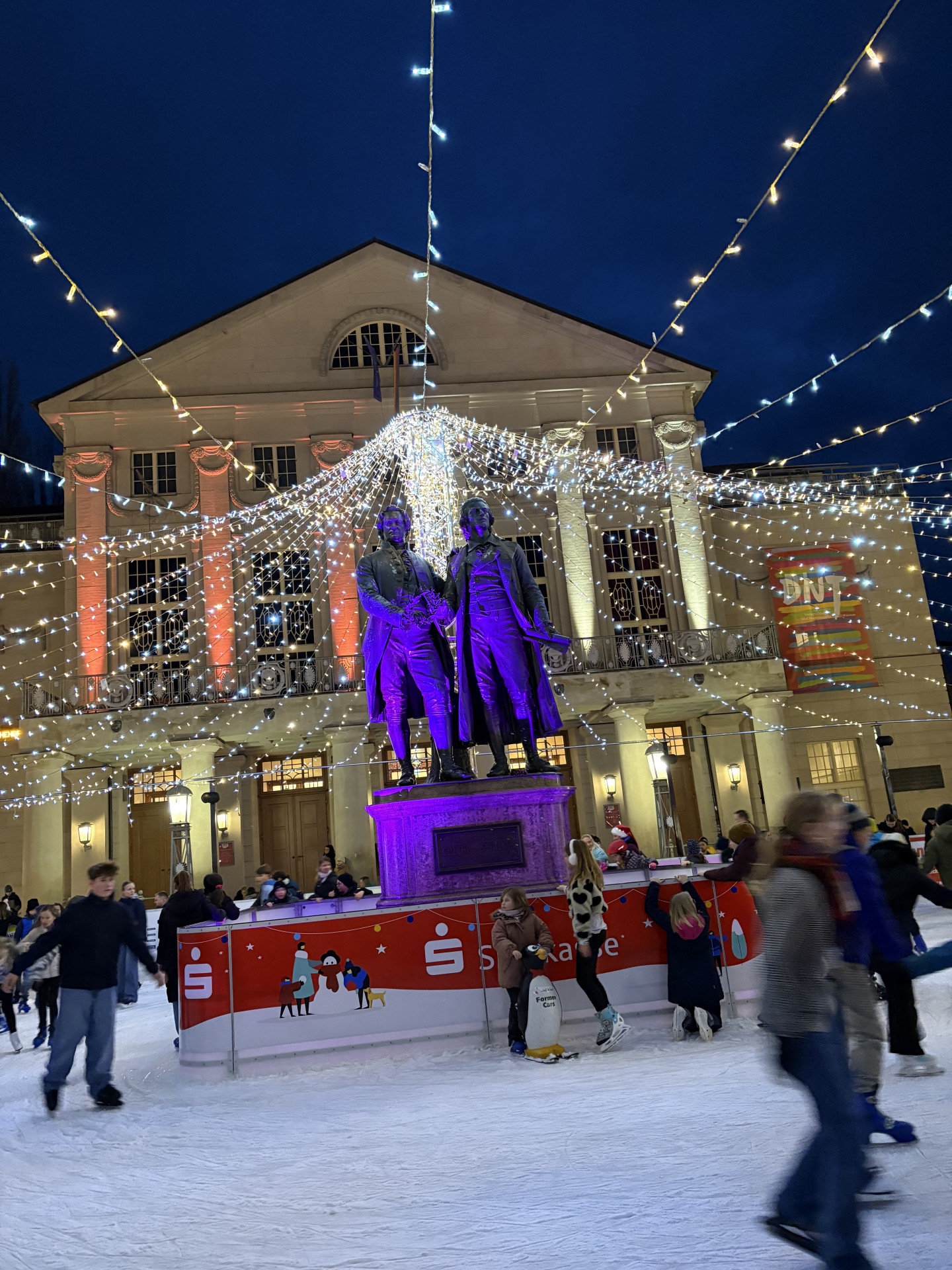 Auch die Freizeit kam nicht zu kurz und wurde von den Jugendlichen selbstständig und verantwortungsvoll genutzt. Einige besuchten das Museum für Zwangsarbeit, andere Goethes Wohnhaus, die Herzogin Anna Amalia Bibliothek oder das Schiller-Museum. Zwischendurch lockte der Weimarer Weihnachtsmarkt, und sogar ein gemeinsamer Ausflug auf die Schlittschuhbahn stand auf dem Programm.