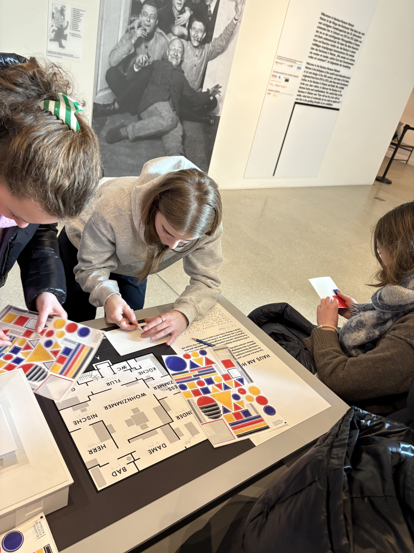 Ergänzt wurde dieser Besuch durch weitere Stationen, die historische Zusammenhänge greifbar machten. Im Haus der Weimarer Republik erfuhren die Schülerinnen und Schüler anschaulich, wie die erste deutsche Demokratie entstand, welche Hoffnungen mit ihr verbunden waren – und warum sie scheiterte. Einen kreativen Kontrast bot das Quartier der Moderne, wo sich die Gruppe mit dem Bauhaus auseinandersetzte und sogar eigene Postkarten im Bauhaus-Stil gestaltete.