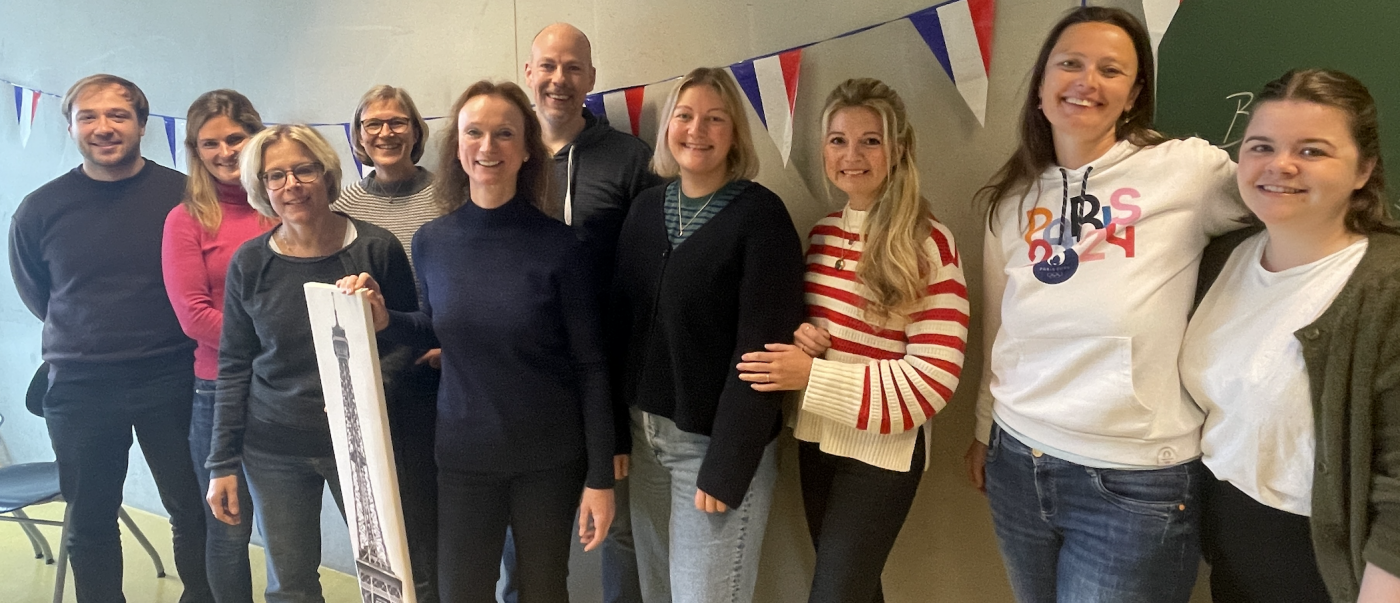 Die Fachschaft Französisch: Herr Jünemann (Referendar), Frau Wittig, Frau Schäfer-Högner, Frau Galemann, Frau Helmich, Herr Adelhöfer, Frau Grandt, Frau Schumacher, Frau Heix, Frau Linten