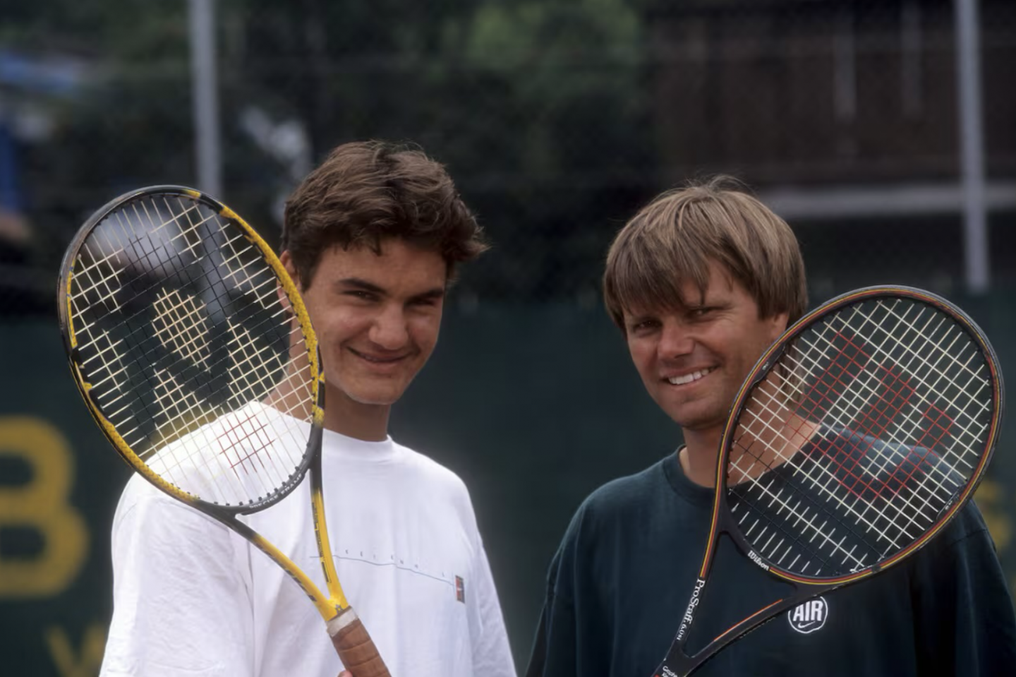 Federer zusammen mit seinem australischen Trainer Peter Carter, der im Alter von 37 Jahren bei einem Unfall ums Leben kam.